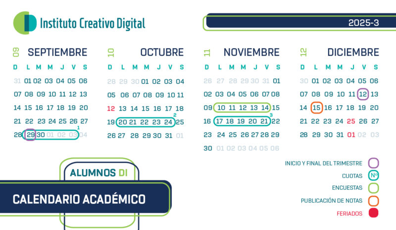 El Instituto Creativo Digital ha diseñado este innovador esquema de 9 trimestres adaptado a las exigencias del mercado laboral actual, en donde además el estudiante irá adquiriendo conocimiento y experiencia de manera progresiva de acuerdo a sus requerimientos.